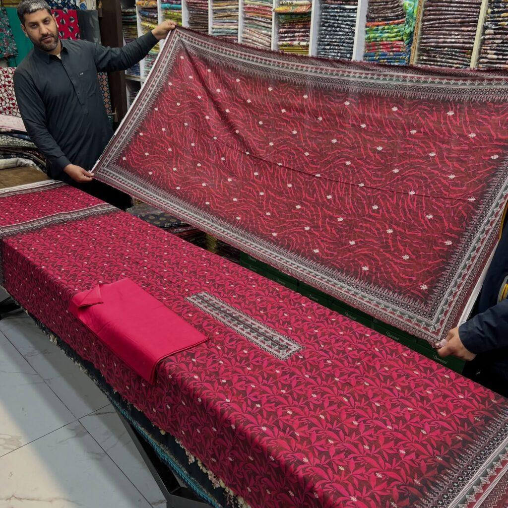 ₨ 1,800Safa Marwa Original Brand Printed Slub Karandi – Winter Collection 2 Piece Suit