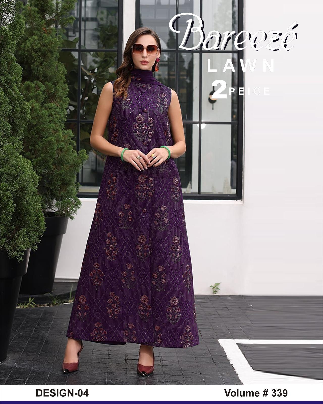 339 VOL BAREEZE LUXURY COLLECTION LAWN EMB 2-piece Suit Women Dresses Lawn Fabric Design No 4
