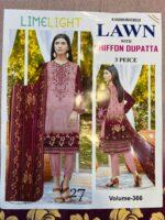 Lawn Embroidered Suit Neck Embroidered With Chiffon Dupatta Plain Dyed Trouser