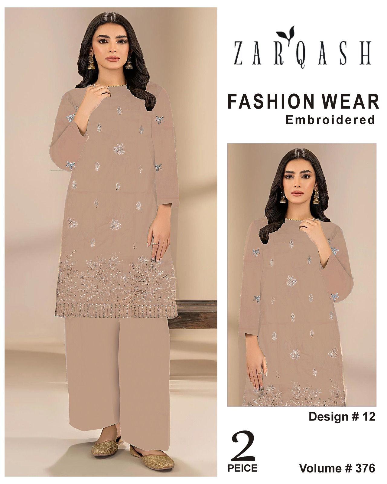 376-Vol ZARQASH LUXURY COLLECTION LAWN EMB 2-piece Suit Women Collection Design NO 12