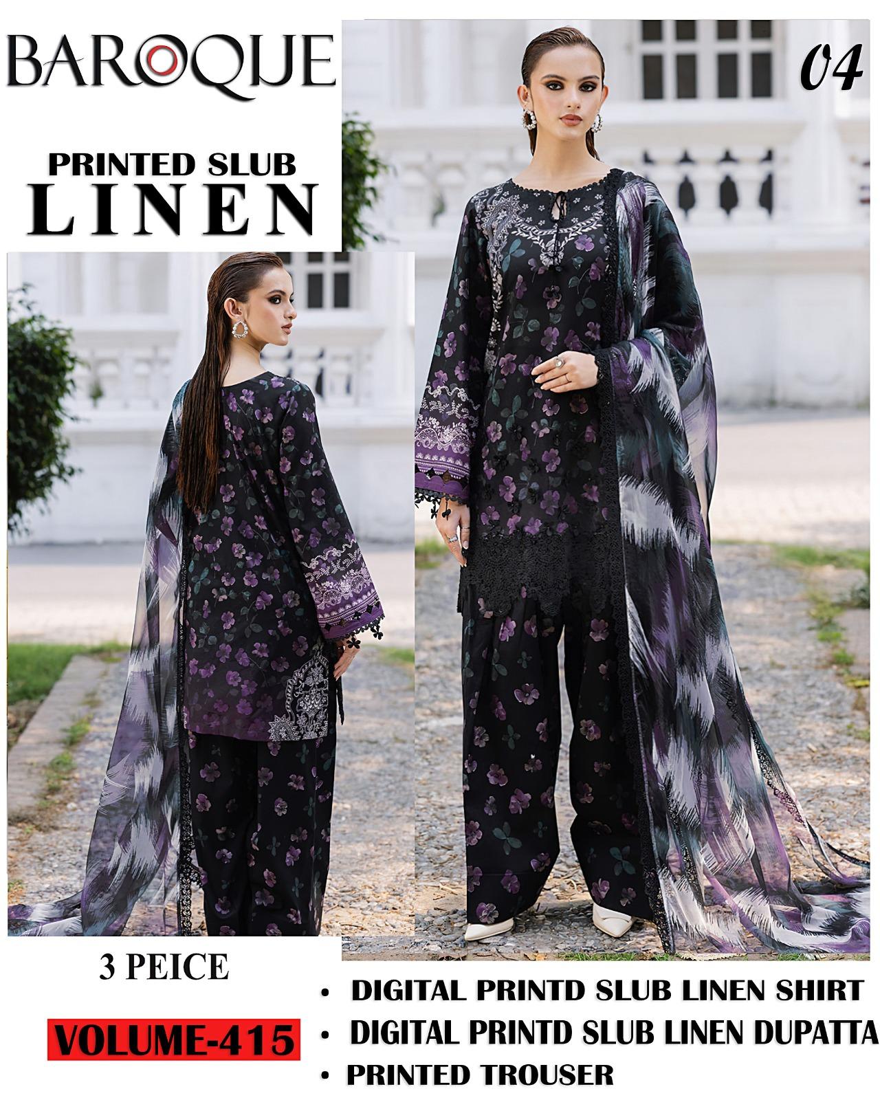Be the first to review “415-Volume Baroque Printed Slub Linen 3 Pc Suit Women Collection Design No 4” Cancel reply