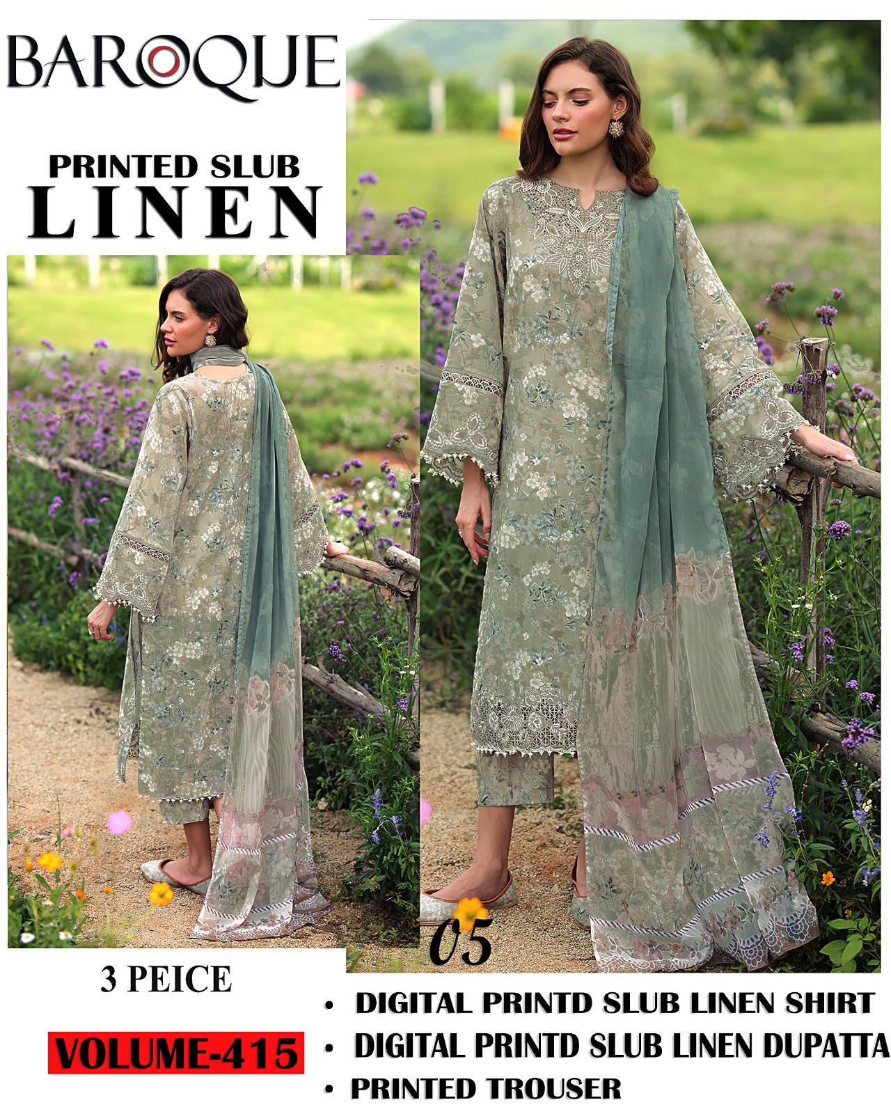 Be the first to review “415-Volume Baroque Printed Slub Linen 3 Pc Suit Women Collection Design No 5” Cancel reply