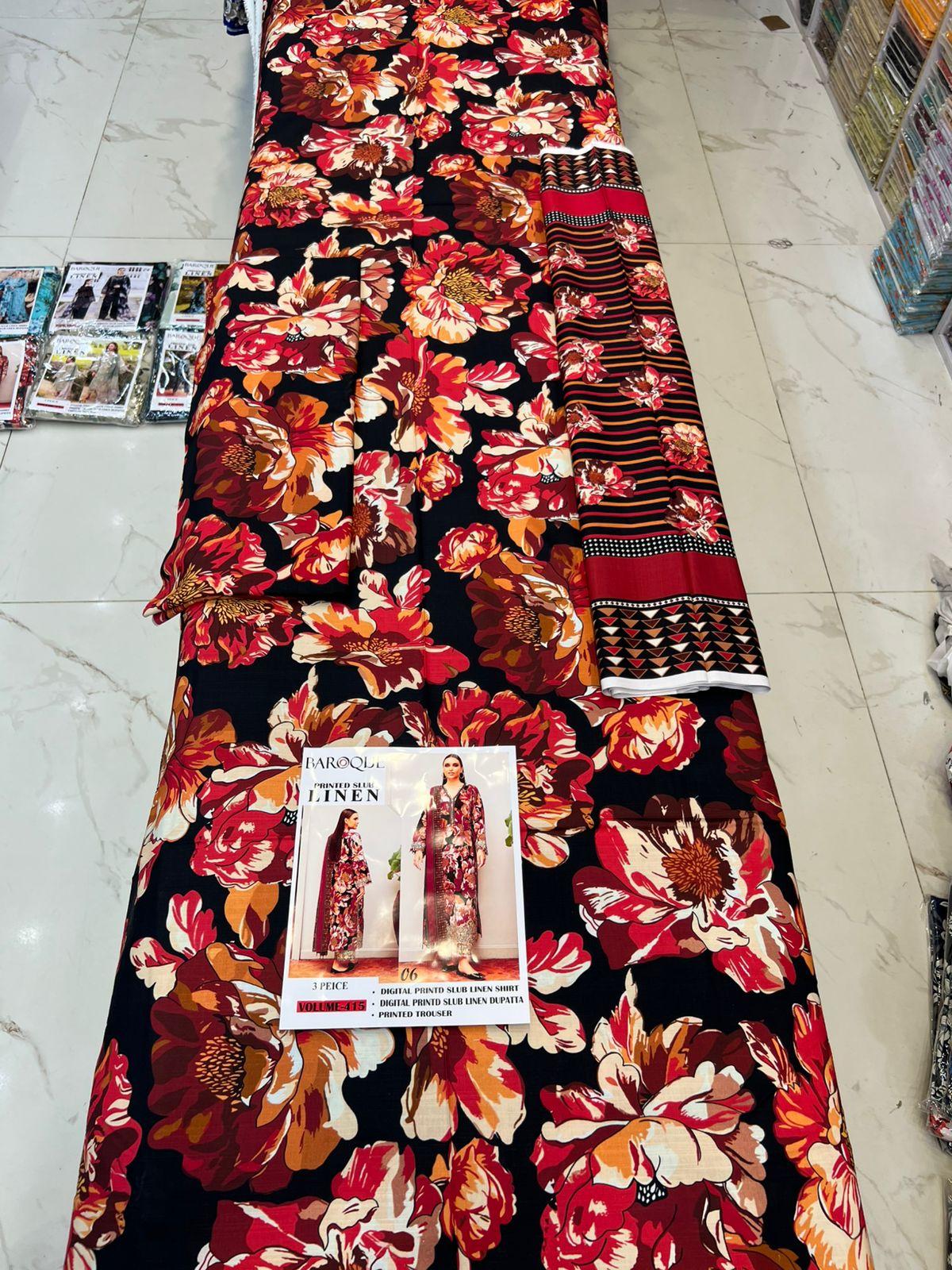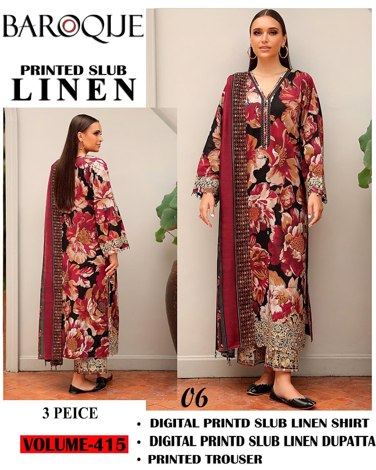 Be the first to review “415-Volume Baroque Printed Slub Linen 3 Pc Suit Women Collection Design No 6” Cancel reply