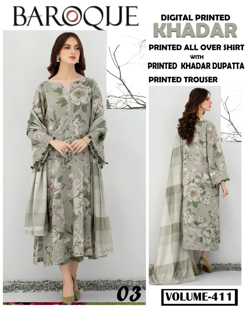 Vol-59 BAROQUE DIGITAL PRINTED KHADDAR 3PC SUIT KHADDAR FABRIC WOMEN COLLECTION DESIGN NO 1
