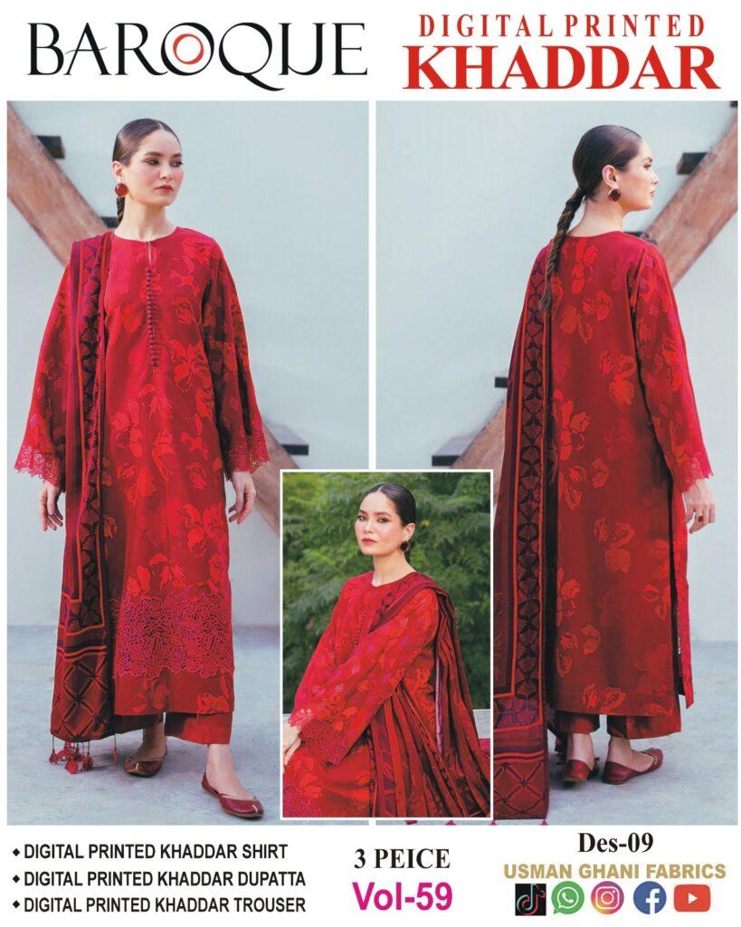 Vol-59 BAROQUE DIGITAL PRINTED KHADDAR 3PC SUIT KHADDAR FABRIC WOMEN COLLECTION DESIGN NO 1