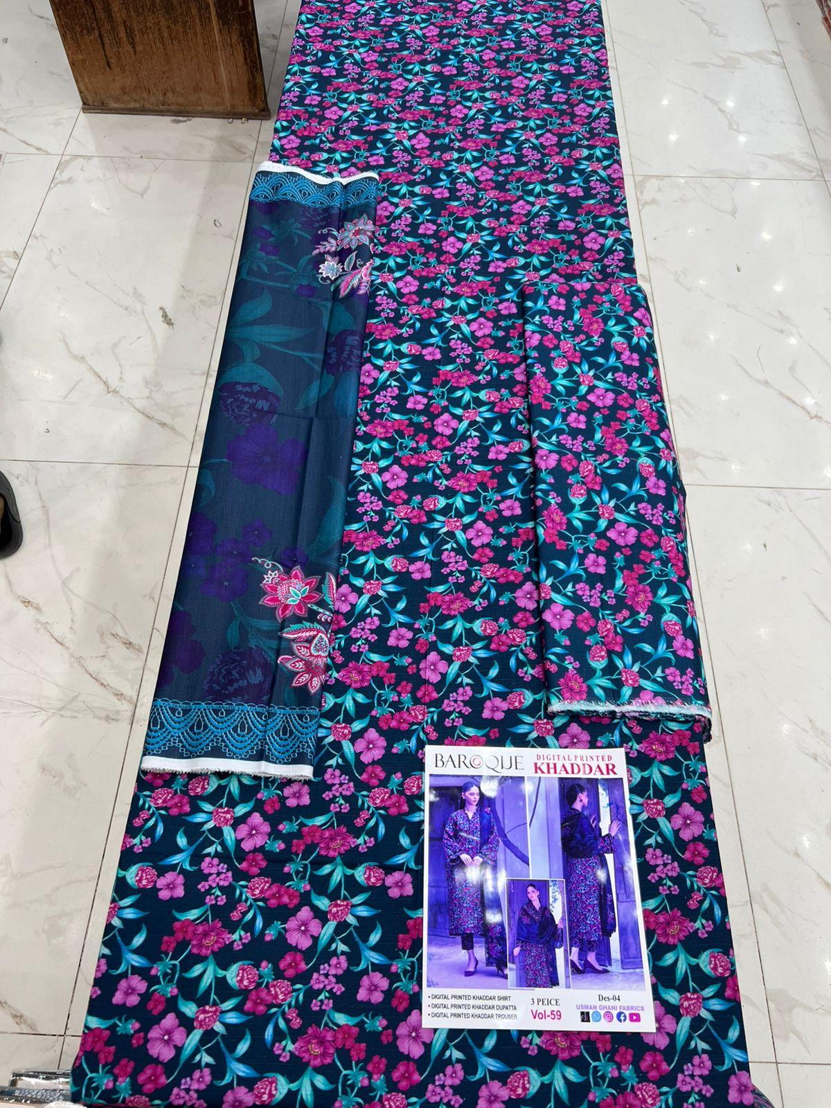 Vol-59 BAROQUE DIGITAL PRINTED KHADDAR 3PC SUIT KHADDAR FABRIC WOMEN COLLECTION DESIGN NO 4
