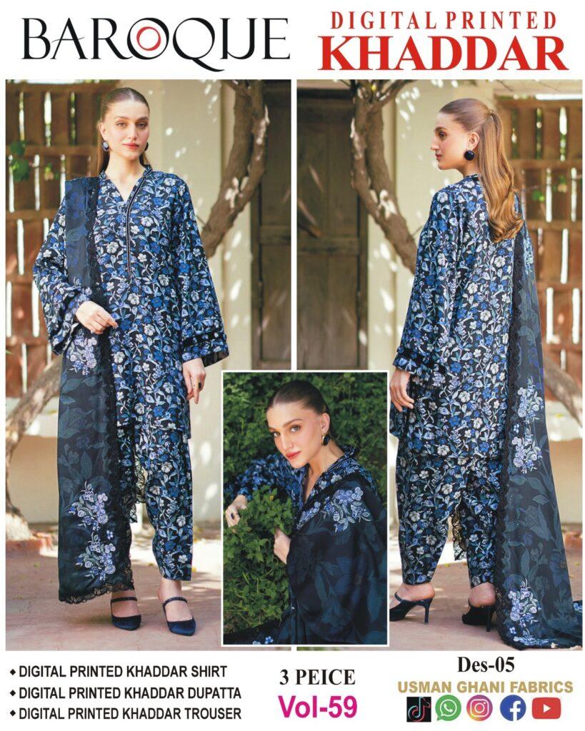 Vol-59 BAROQUE DIGITAL PRINTED KHADDAR 3PC SUIT KHADDAR FABRIC WOMEN COLLECTION DESIGN NO 6