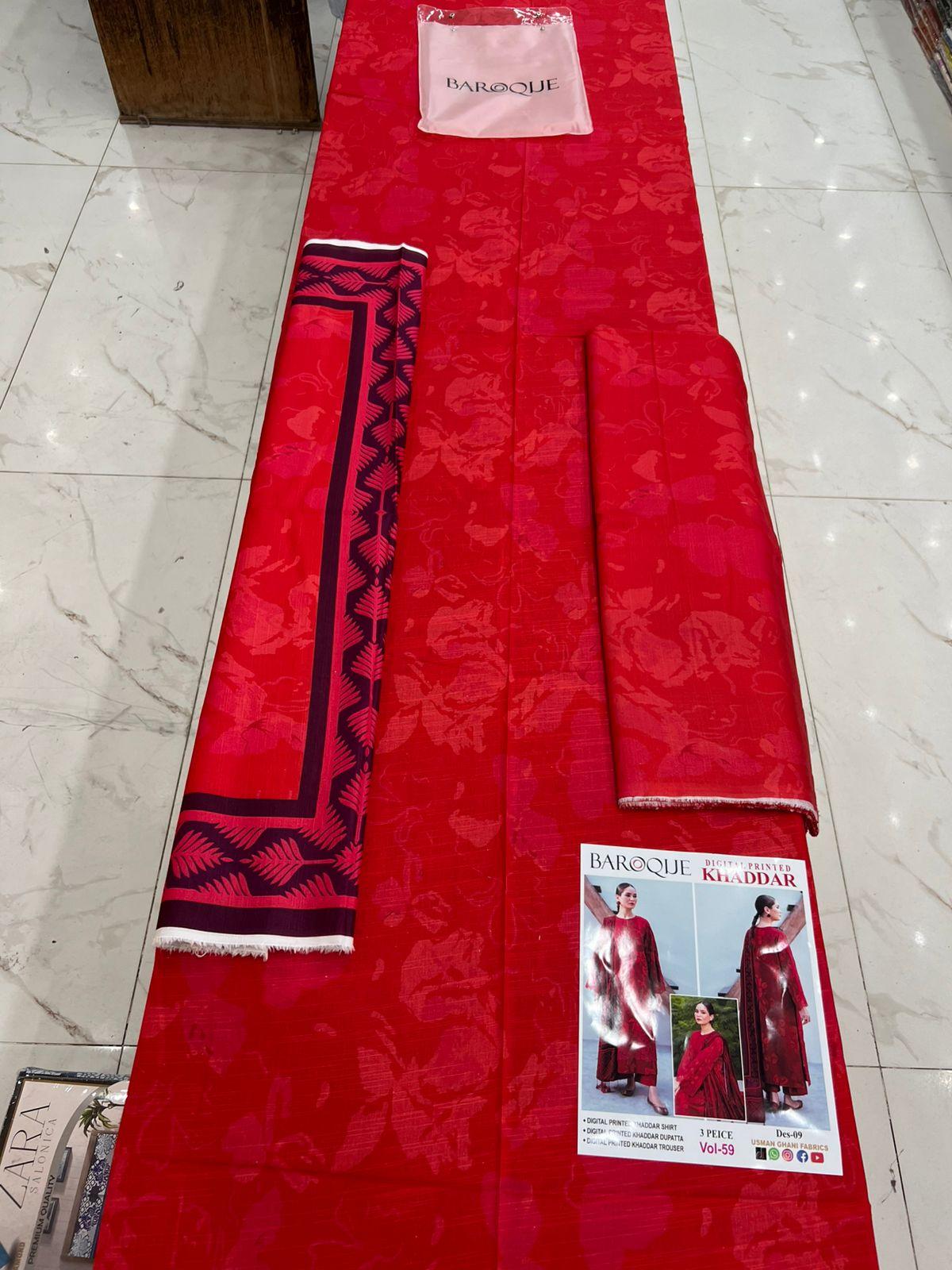 Vol-59 BAROQUE DIGITAL PRINTED KHADDAR 3PC SUIT KHADDAR FABRIC WOMEN COLLECTION DESIGN NO 9