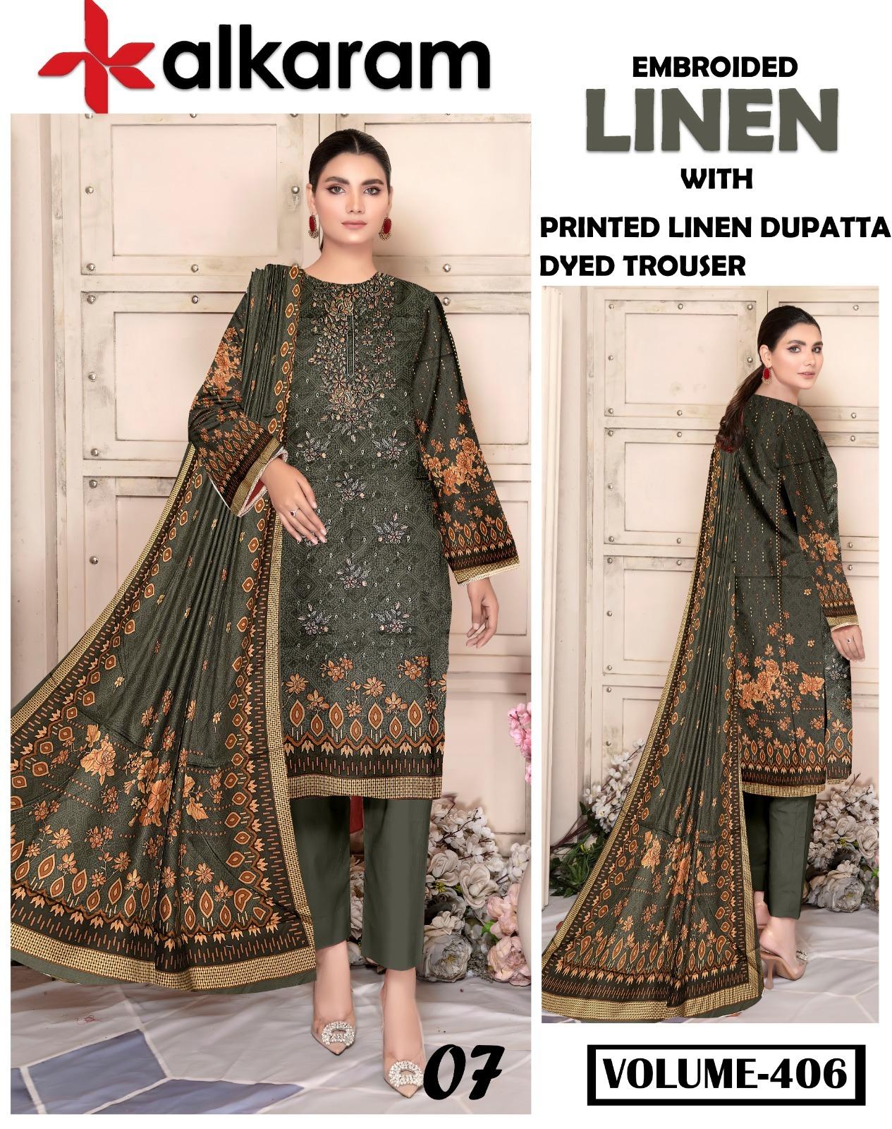 GUL AHMAD MARIA.B CHARIZMA ASIM JOFA BRANDED LINEN EMBROIDERED 3PC SUIT WOMEN COLLECTION DESIGN NO 11