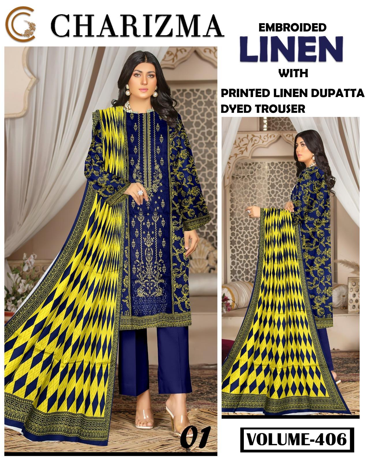 GUL AHMAD MARIA.B CHARIZMA ASIM JOFA BRANDED LINEN EMBROIDERED 3PC SUIT WOMEN COLLECTION DESIGN NO 2