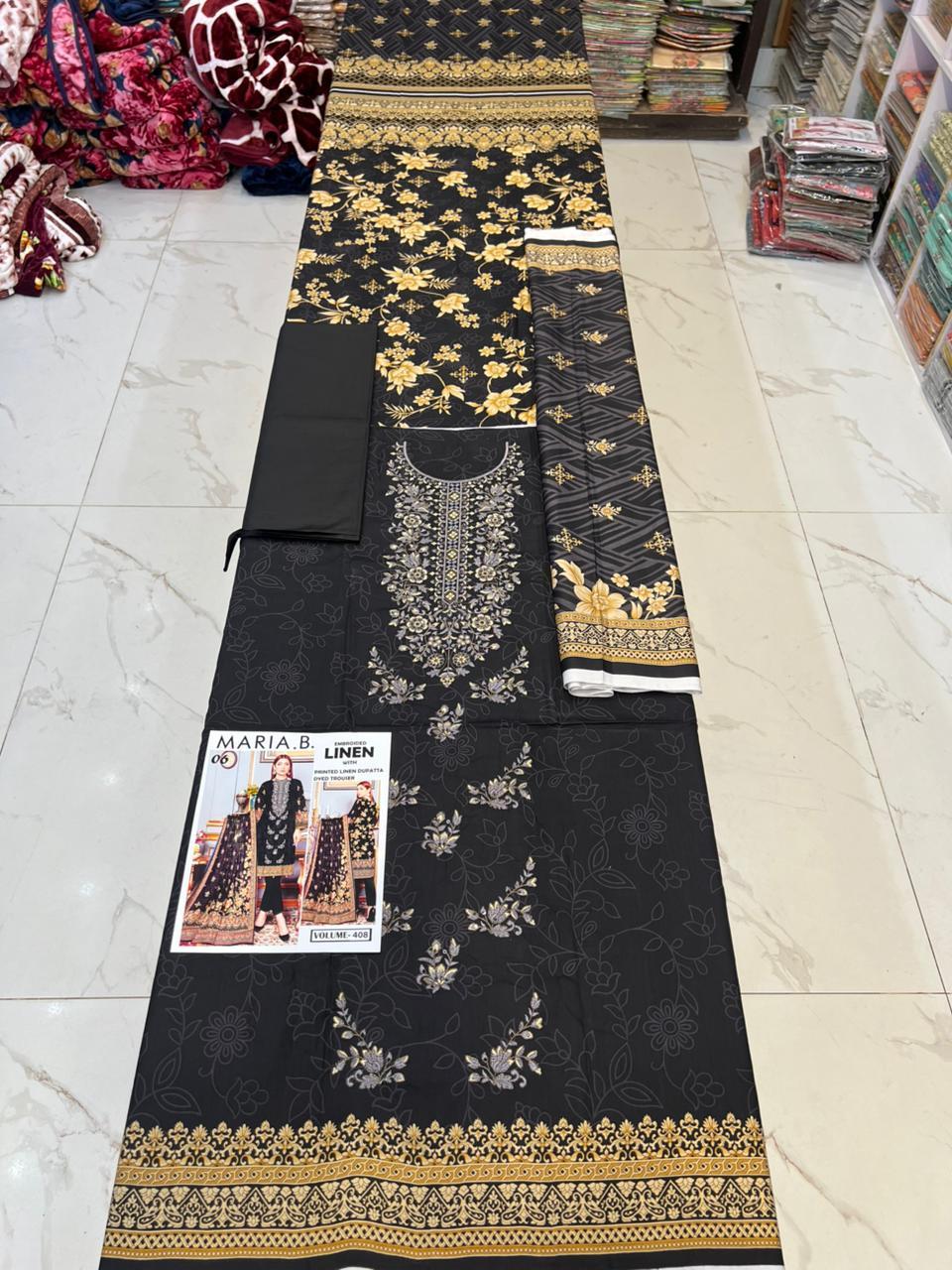 GUL AHMAD MARIA.B CHARIZMA ASIM JOFA BRANDED LINEN EMBROIDERED 3PC SUIT WOMEN COLLECTION DESIGN NO 9