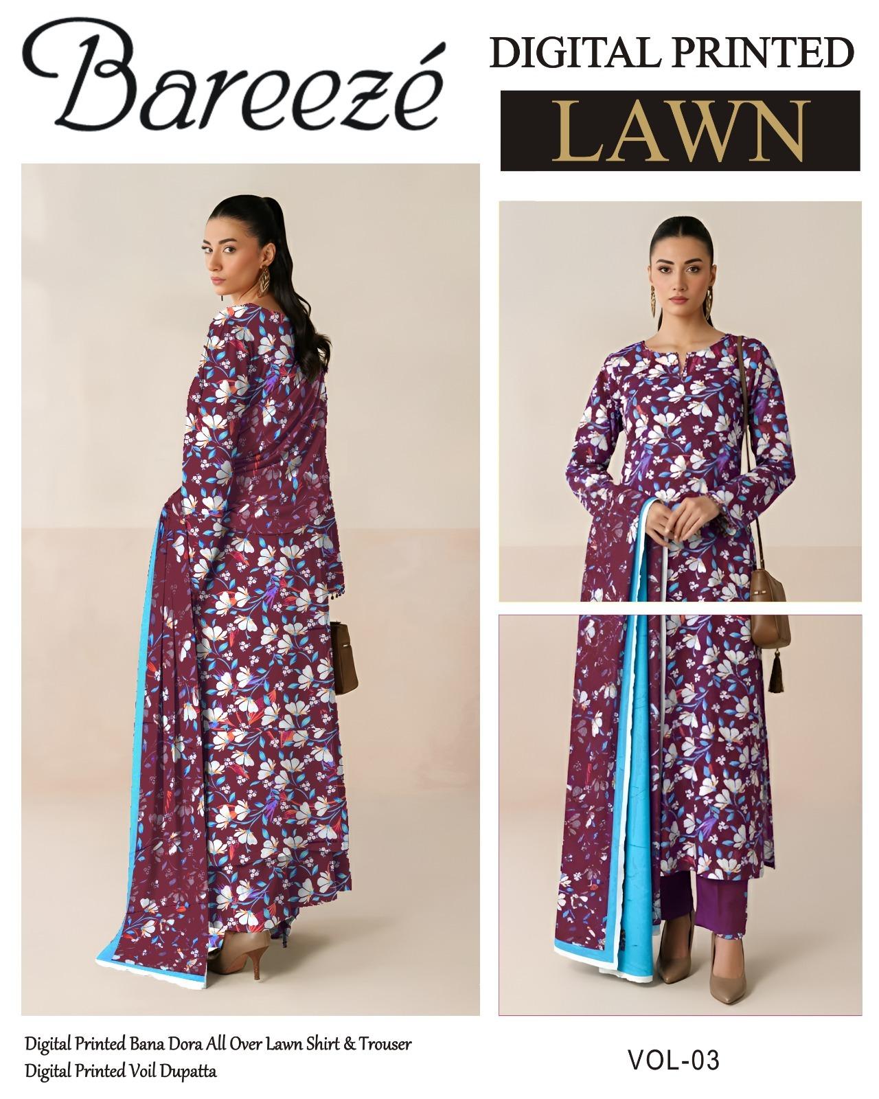 Vol-03 Bareeze Summer Collection 2026 Digital Printed 3pc Suit