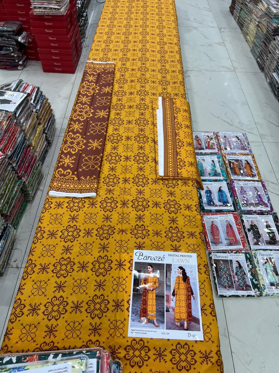 Vol-04 Bareeze Printed Lawn Fabrics 3pc Dresses – Women Wear Design No. 7