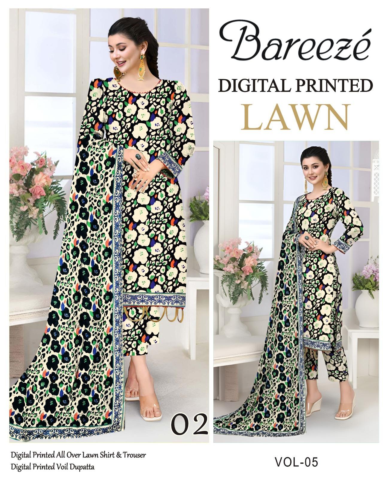 Vol-05 Bareeze Brand Digital Printed Lawn Fabrics 3pc Dresses – Women Wear Design No. 2