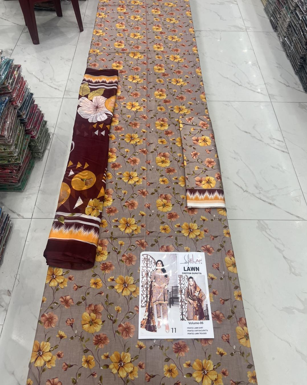 Vol-06 Elaf Premium Printed Lawn 3 Piece Dresses – Women Wear Design No. 11