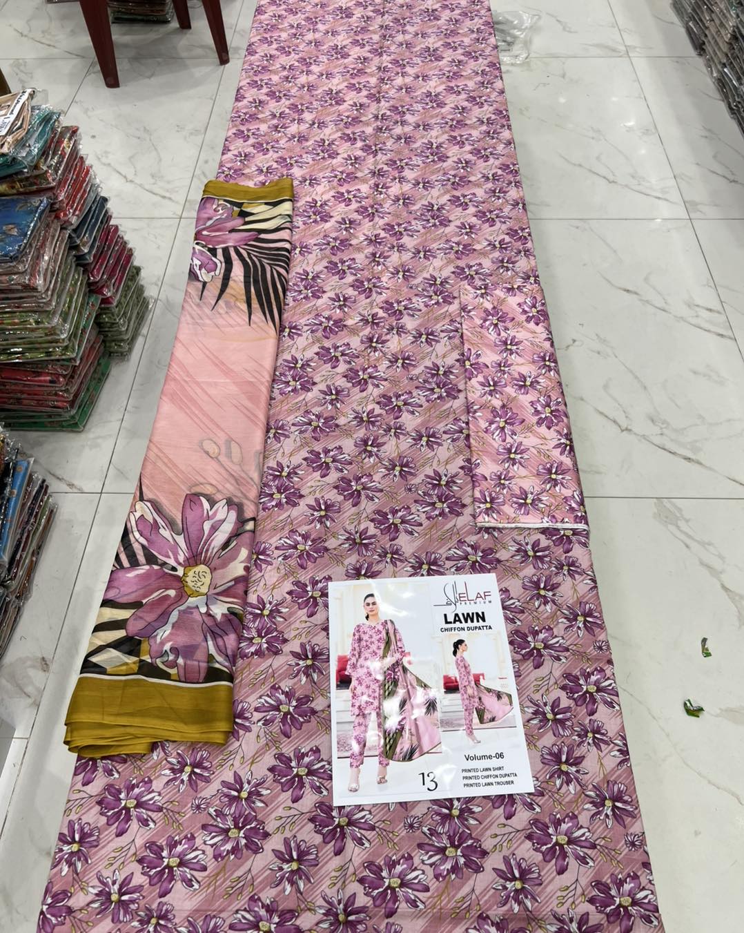 Vol-06 Elaf Premium Printed Lawn 3 Piece Dresses – Women Wear Design No. 13