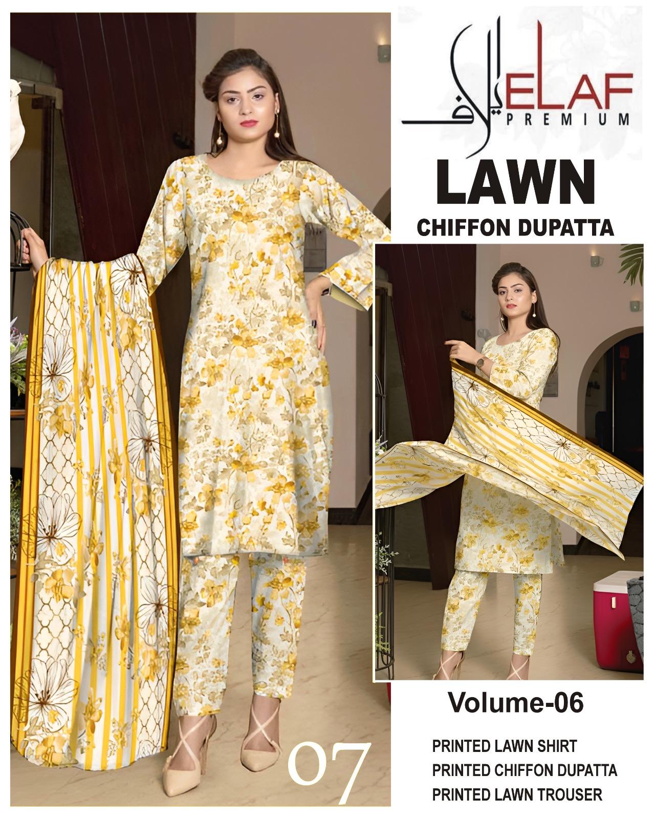 Vol-06 Elaf Premium Printed Lawn 3 Piece Dresses