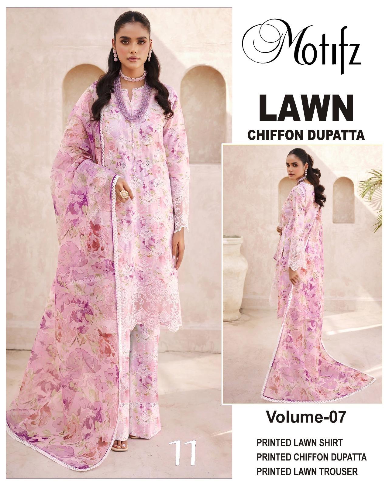 Vol-07 Motifz Premium Printed Lawn 3 Piece Dresses – Women Wear Design No. 11
