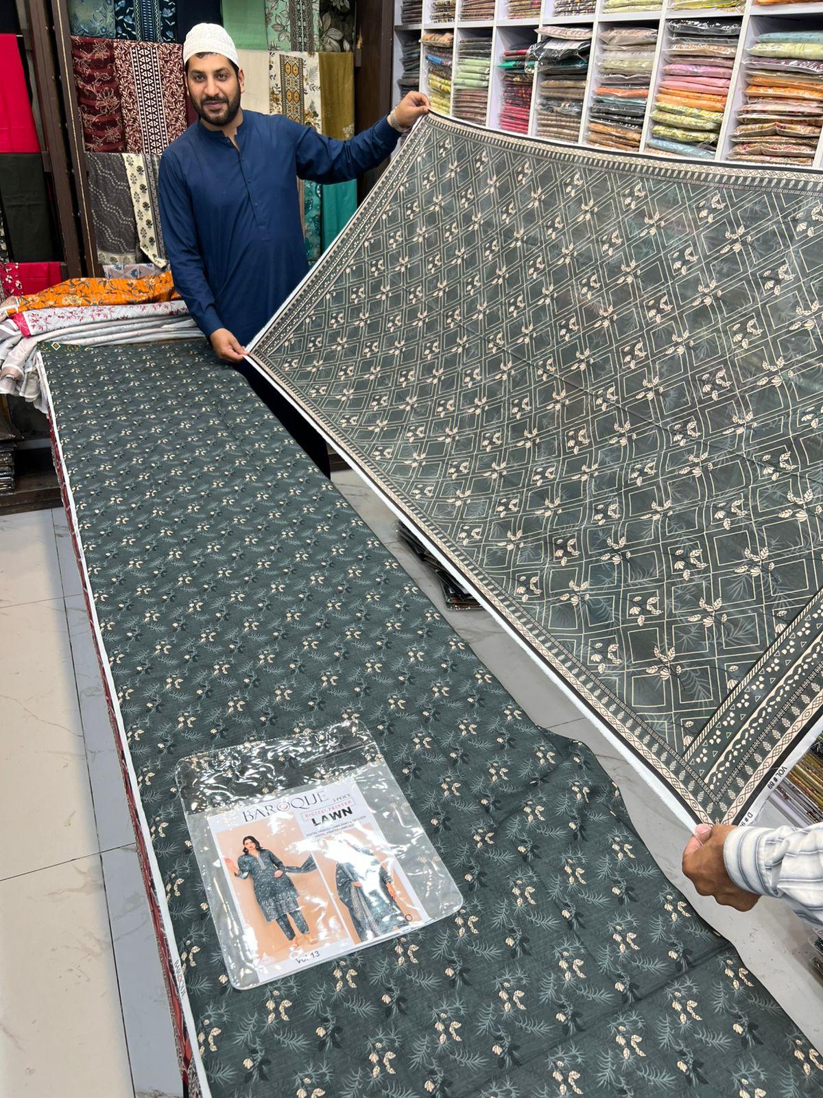Vol-13 Baroque Digital Printed Bana Dora Lawn 3pc Dresses