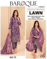 Vol-13 Baroque Digital Printed Bana Dora Lawn 3pc Dresses- Women Wear Design No. 6