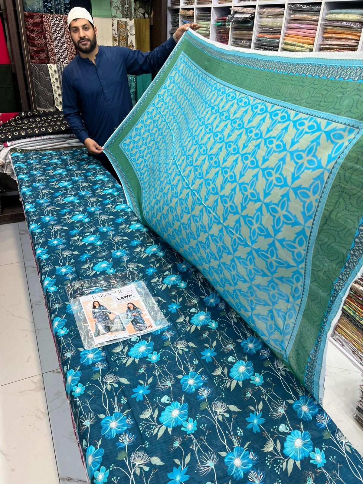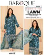 Vol-13 Baroque Digital Printed Bana Dora Lawn 3pc Dresses- Women Wear Design No. 9