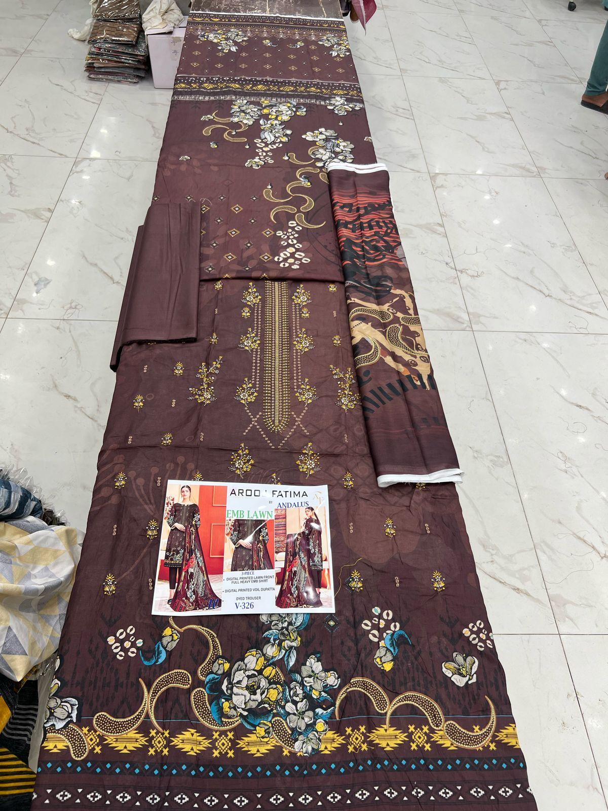Vol-326 Arooj Fatima Digital Printed Lawn Embroidered 3pc Suits