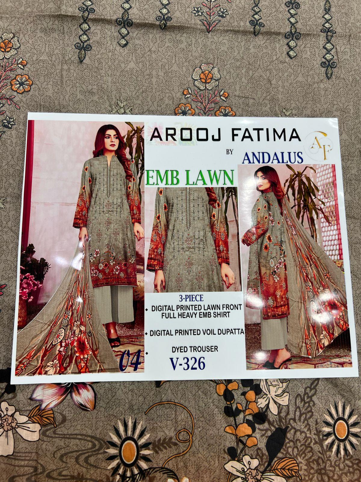Vol-326 Arooj Fatima Lawn Embroidered 3pc Suits – Women Wear Design No. 4
