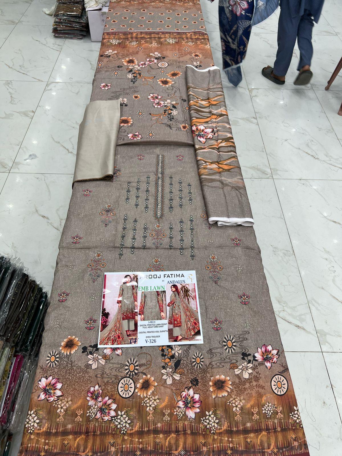 Vol-326 Arooj Fatima Digital Printed Lawn Embroidered 3pc Suits