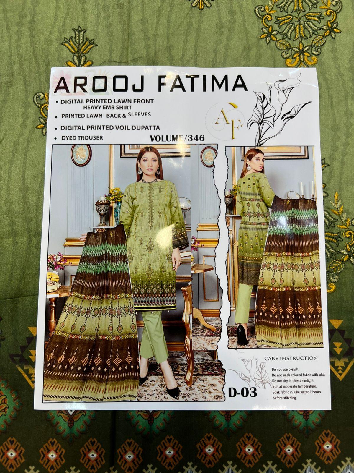 Vol-346 AROOJ FATIMA Original Fine QUALITY LAWN