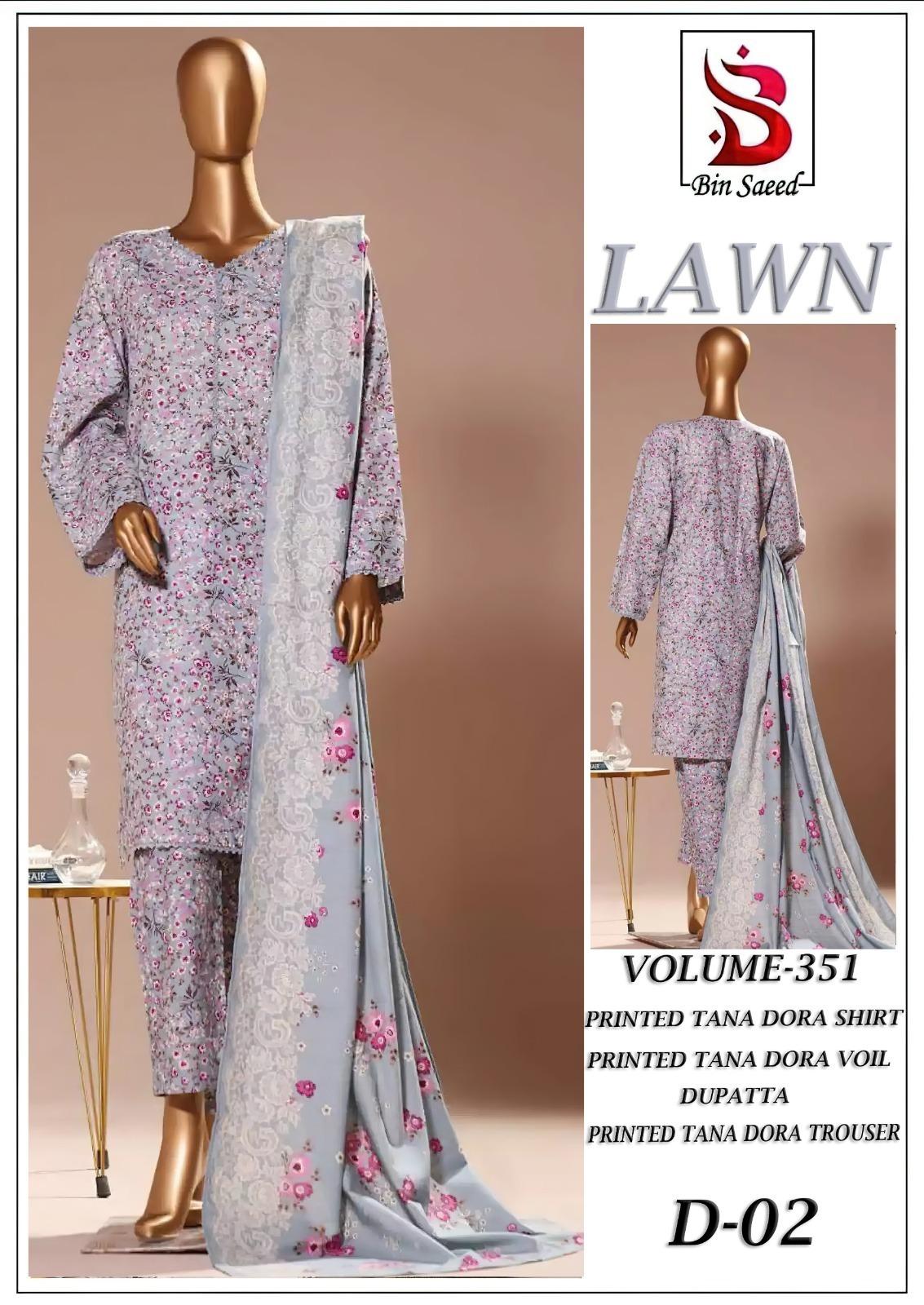 Vol-351 Bin Saeed Printed Tana Dora Lawn 3pc Dresses – Women Wear Design No. 2