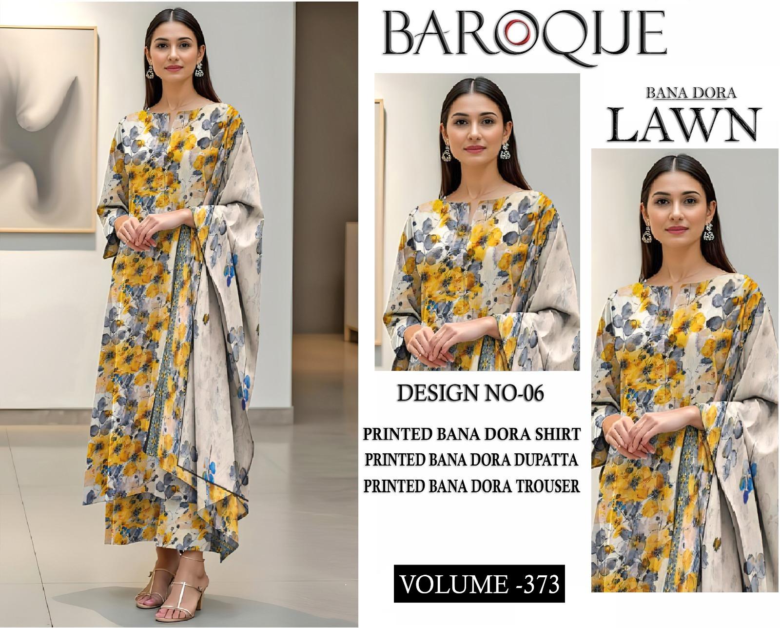 Vol-373 Baroque Digital Printed Bana Dora Lawn 3pc Dresses – Women Wear Design No. 6
