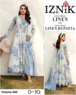 Vol 404 Iznik Nureh Baroque Premium Digital Printed Linen 3 Piece Suit Women Collection Design No 10