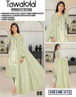 Vol-412 Tawakkal Slub Dhanak Embroidered 3PC Dresses Women Collection Design No 5