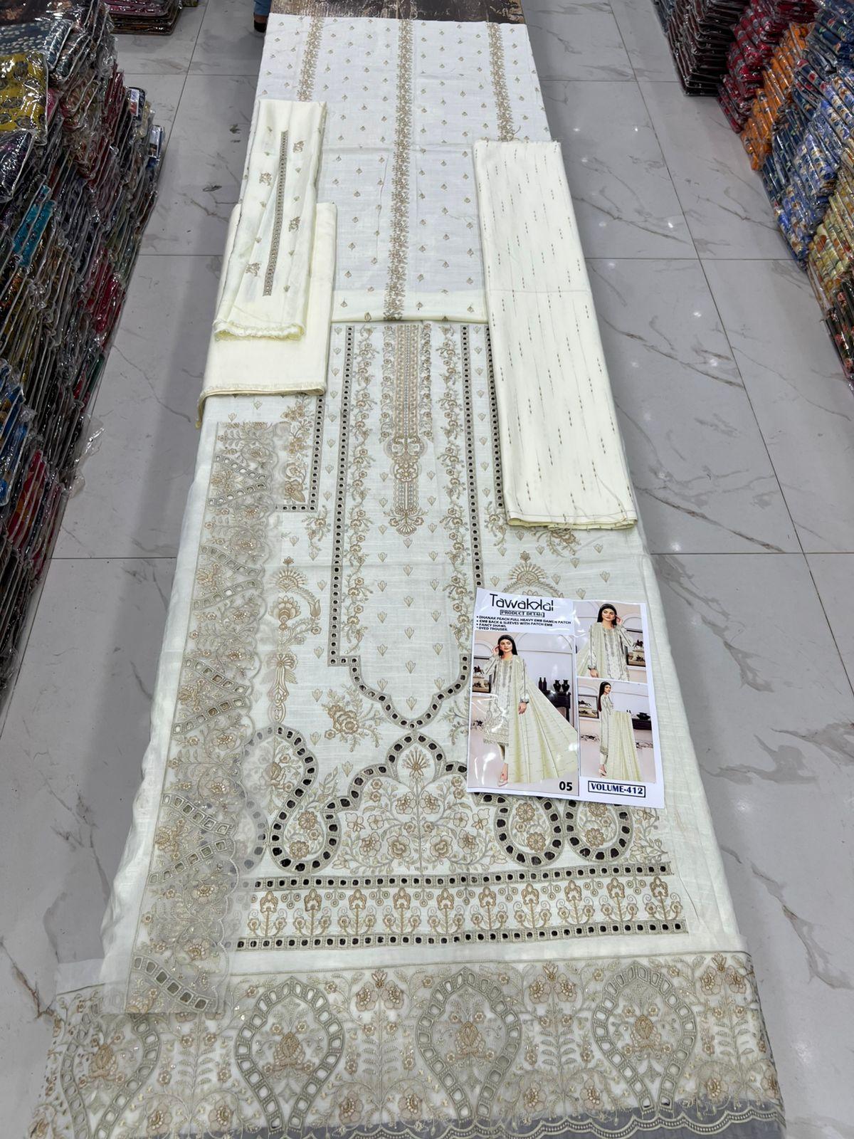 Vol-412 Tawakkal Slub Dhanak Embroidered 3PC Dresses Women Collection Design No 5