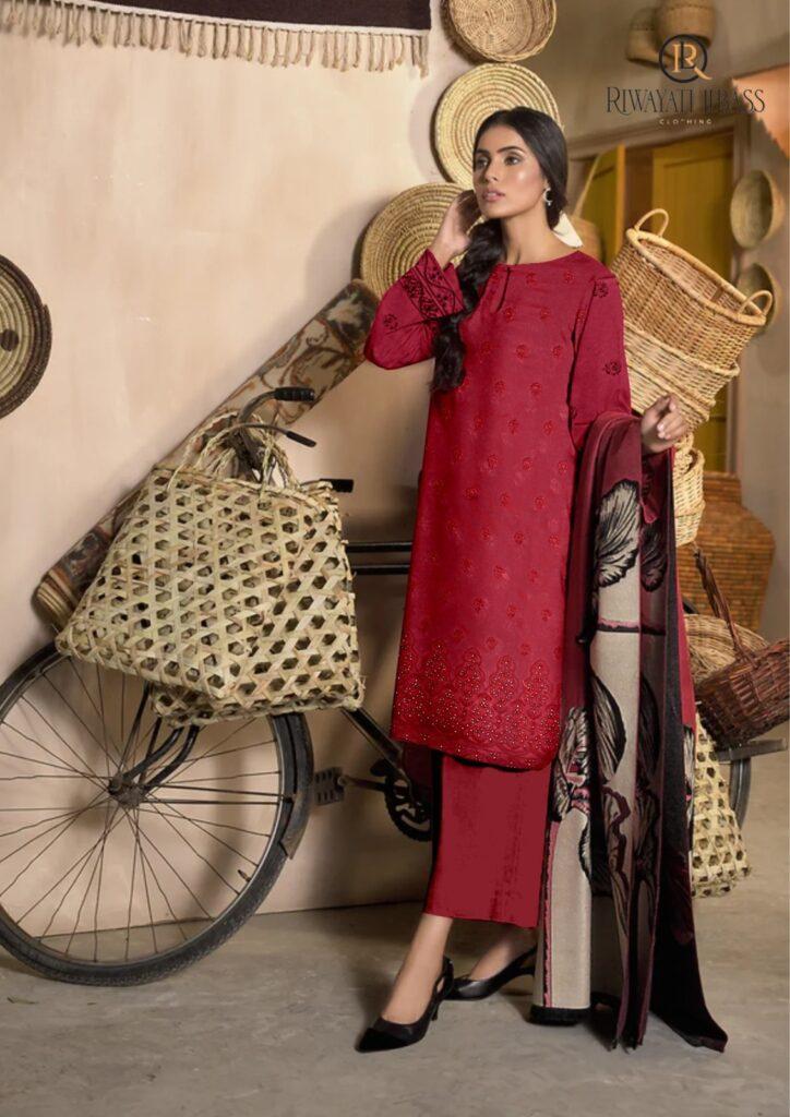 Vol-412 Tawakkal Slub Dhanak Embroidered 3Pc Dresses