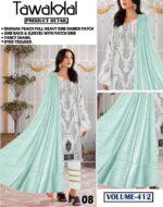 Vol-412 Tawakkal Slub Dhanak Embroidered 3PC Dresses Women Collection Design No 8
