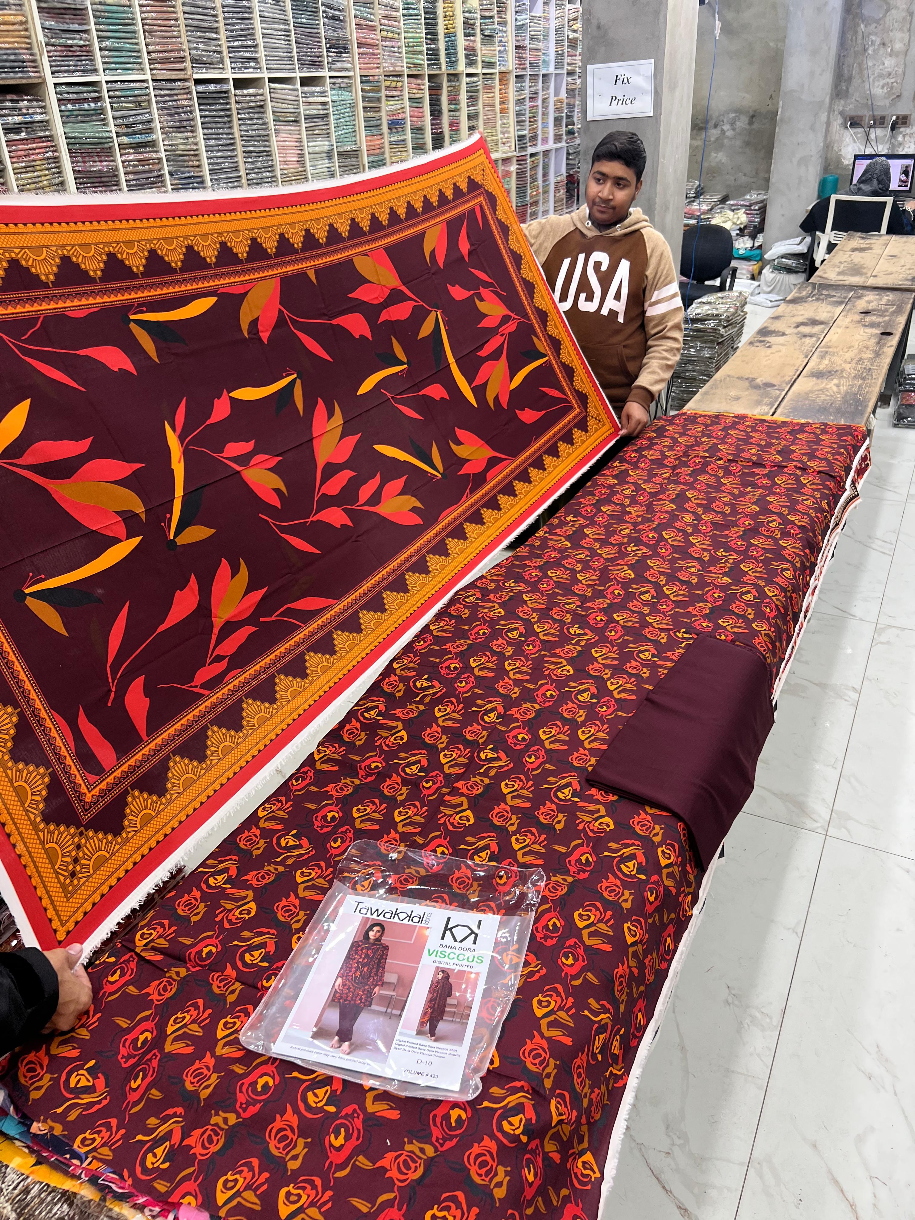 Be the first to review “Vol- 423 Tawakkal Printed Bana Dora Viscose 3pc Dresses – Women Wear Design No. 10” Cancel reply