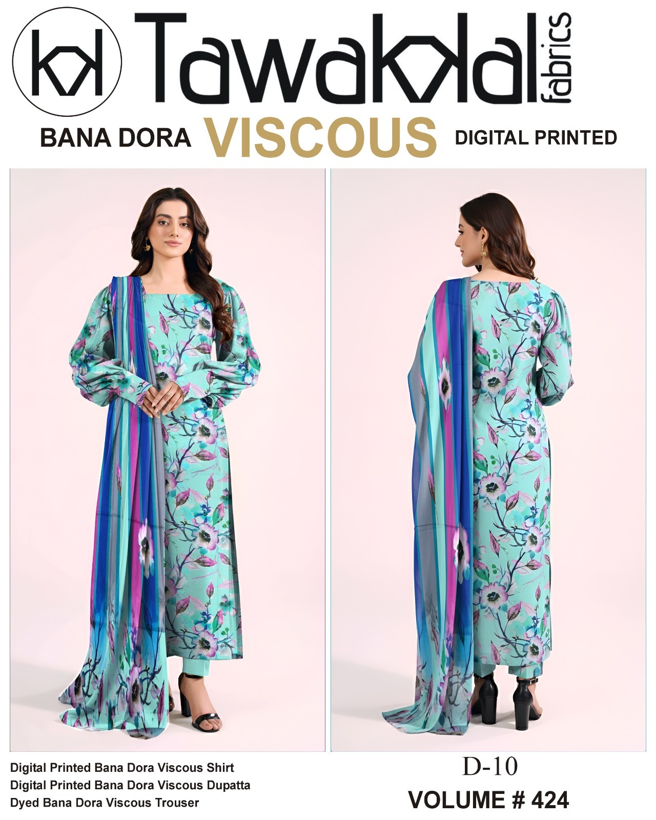 Vol-424 Tawakkal Digital Printed Bana Dora Viscose 3PC Dresses – Women Wear Design No. 10