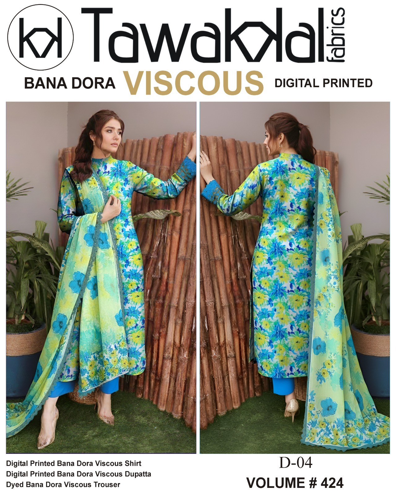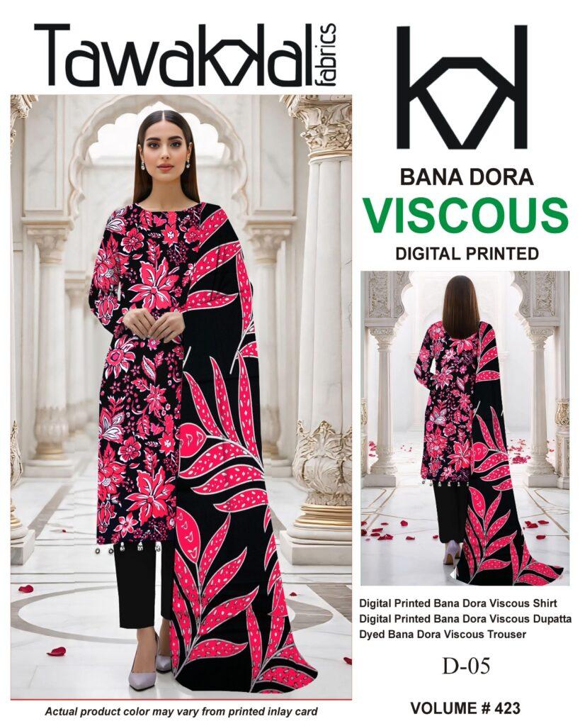Vol-424 Tawakkal Digital Printed Bana Dora Viscose 3PC Dresses – Women Wear Design No. 4
