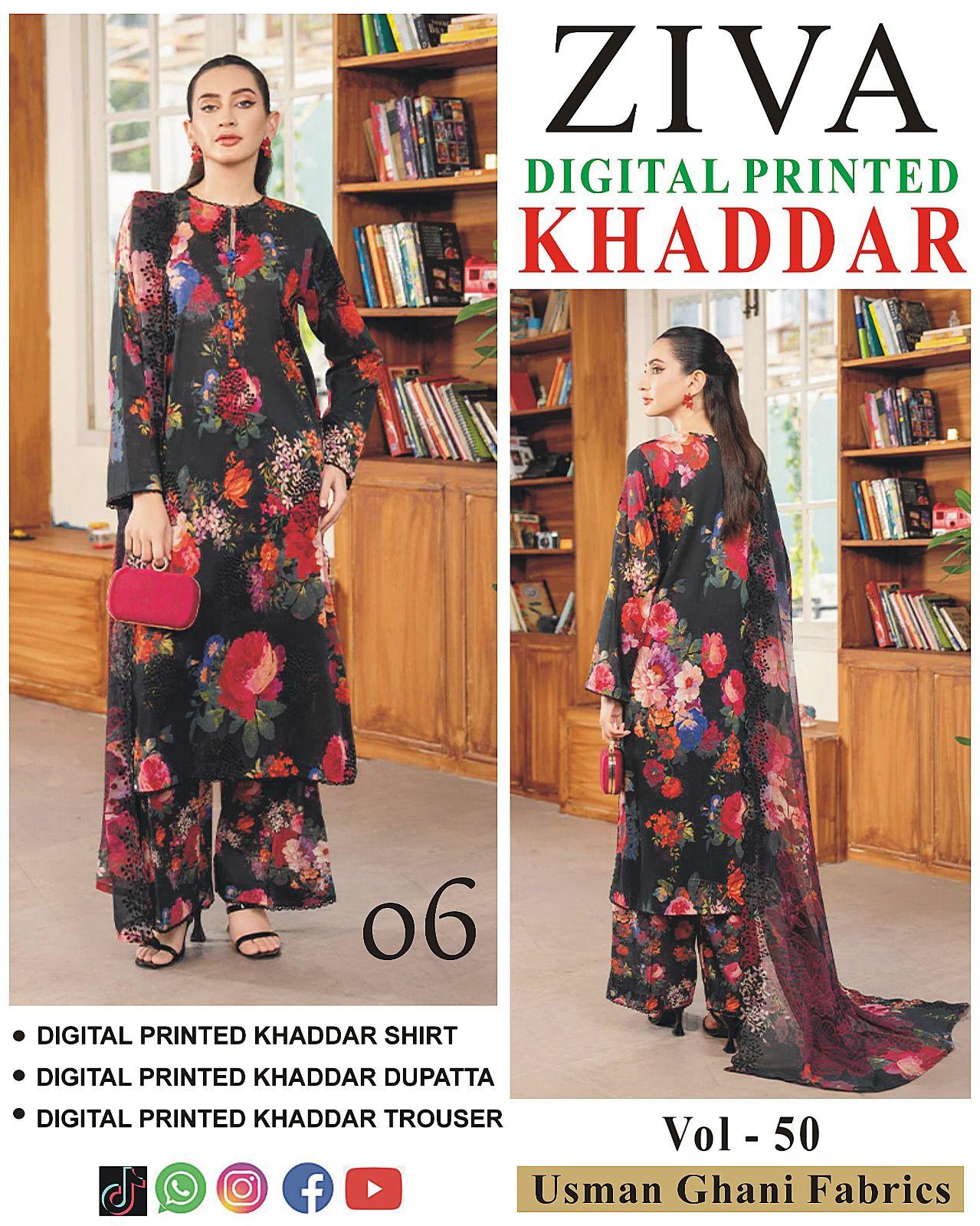 Vol-50 Ziva Khaddar Digital Printed 3 Piece Suit