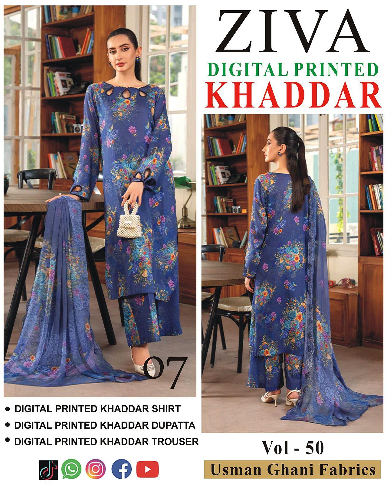 Vol-50 Ziva Khaddar Digital Printed 3 Piece Suit