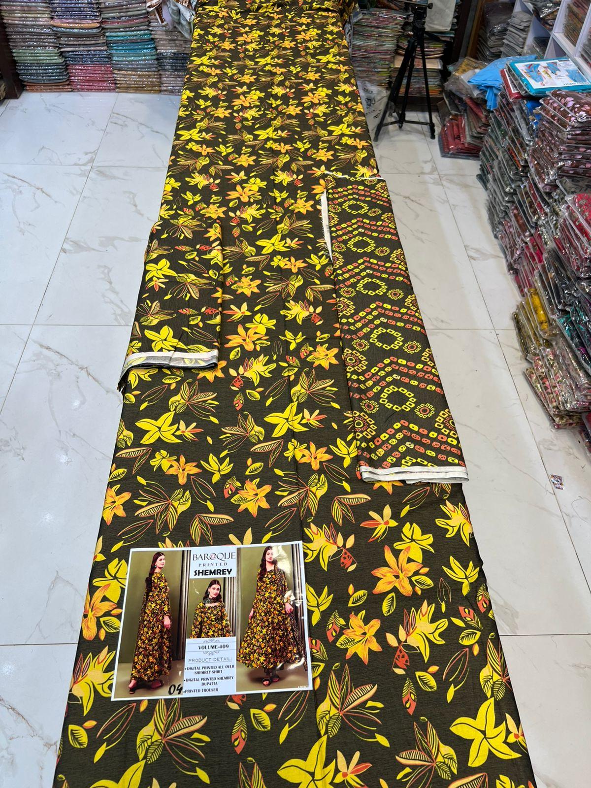 VOLUME-409 BAROQUE PRINTED SHEMREY DIGITAL PRINTED 3 PIECE SUIT WOMEN COLLECTION DESIGN NO 4