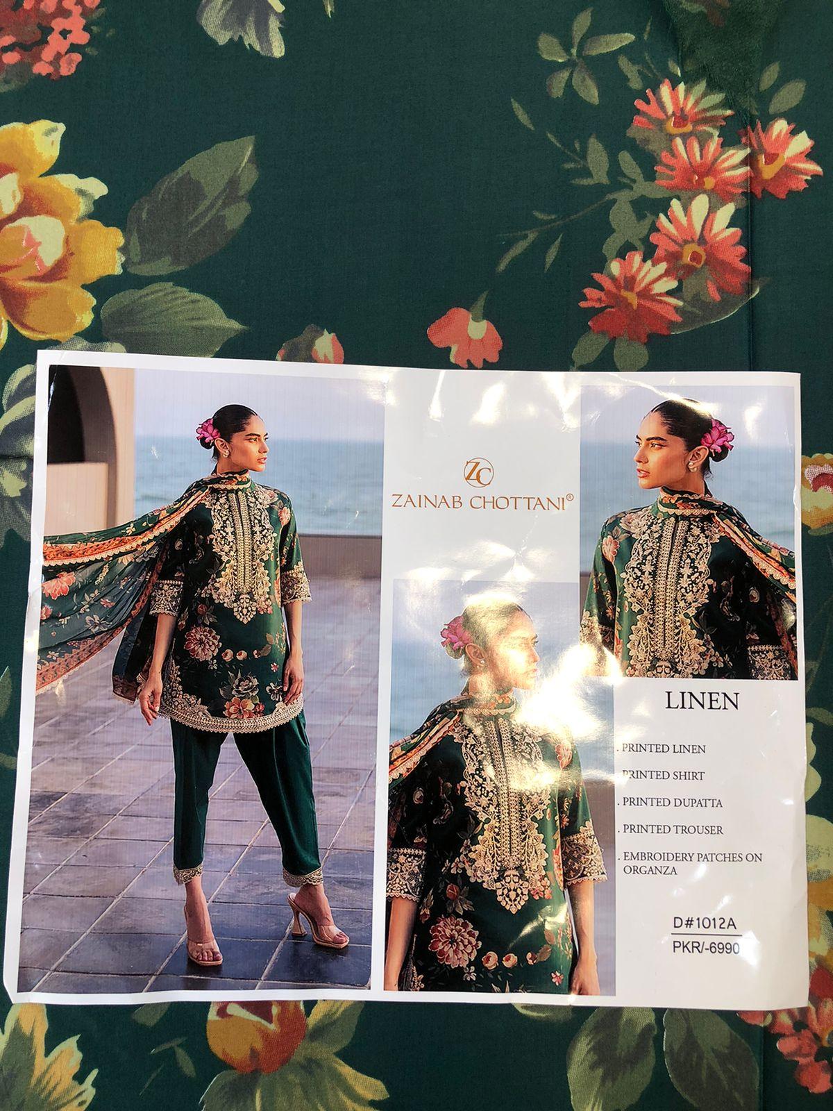 ZAINAB CHOTTANI, BAROQUE, IZNIK, JAZMIN, LIMELIGHT DIGITAL PRINTED LINEN 3PC SUIT WOMEN COLLECTION DESIGN NO 7